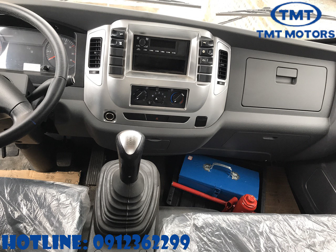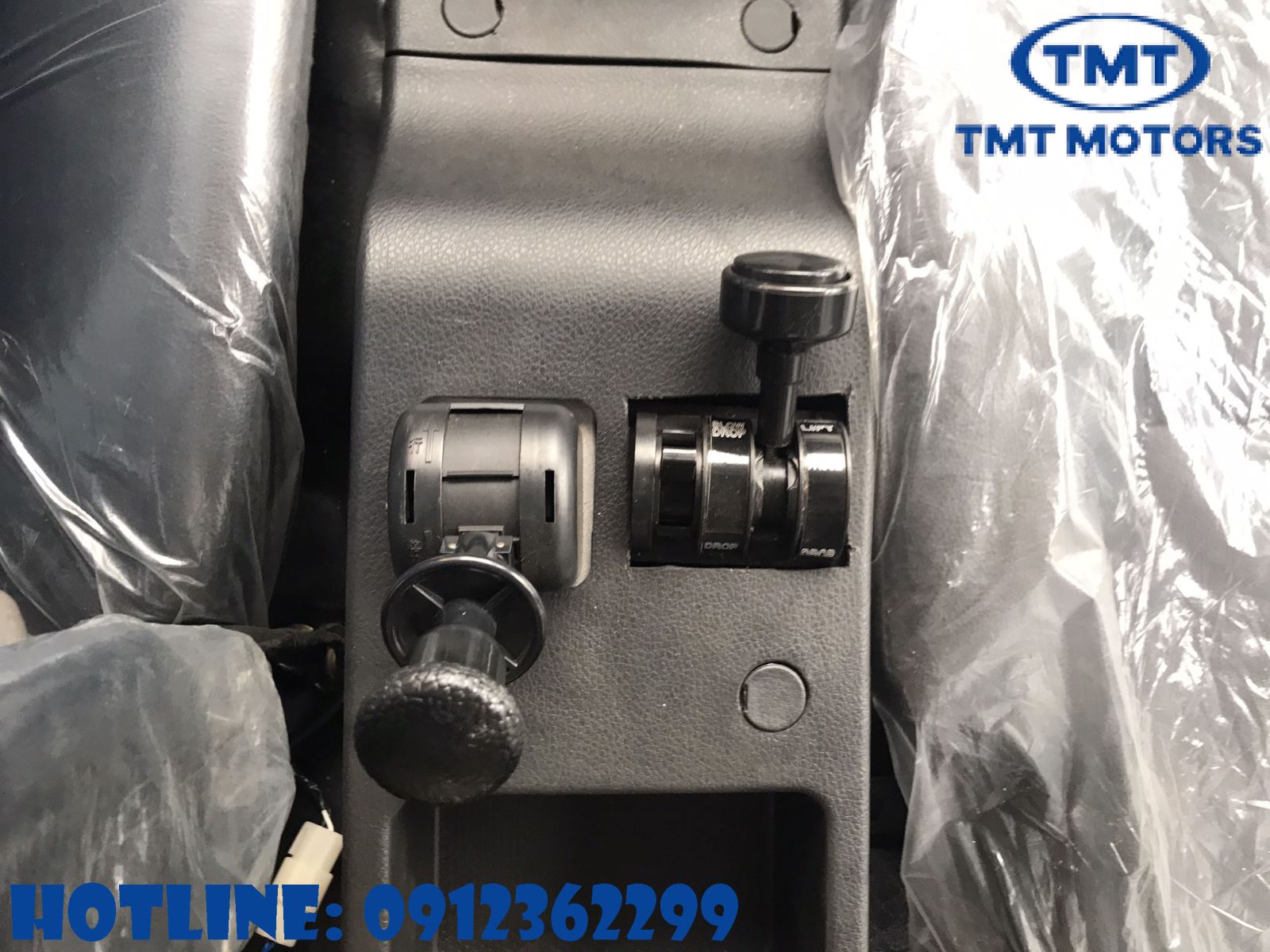 Đằng sau cần số là hốc để đồ và hệ thống tay trang điều khiển ben và phanh tay của xe. Tay lắm phanh lốc kê đặt ở vi trí rất thuận tiện và dễ dàng sử dụng, bên cạnh đó là tay điều khiển lên xuống ben với 2 chế độ lên ben nhanh chậm.