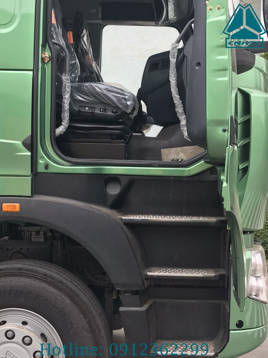 Đầu xe tải howo thùng 5 chân A7 nóc thâp mang lại cảm giác chắc chắn, mạnh mẽ và thiết kế vô cùng tiện dụng cho chủ sở hữu. Khung gầm vững chãi hạn chế tối đa mức độ thiệt hại khi bị va chạm; đèn pha của xe howo 5 chân A7 sáng cho góc chiếu rộng đảm bảo tầm quan sát khi đi vào ban đêm, đèn chuyển hướng kích thước lớn giúp người đi đường dễ nhìn thấy nhờ vậy mức độ an toàn luôn ở mức cao; thiết kế 3 bậc thang giúp người sử dụng xe lên xe dễ dàng.